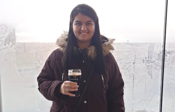 The real hero of the entire experience was the gravity bar! or so I thought it would be but I was really disappointed. Firstly, The bar was too small to accommodate the crowd and since it's a rooftop bar covered by glass to give a 360 degree view of Dublin, it was all fogged up due to the weather like literally you could see people swiping their hands on the class like one would do on a car window. you can see it in the picture of me in the Gravity Bar. If u notice in the background behind me it's the glass wall but its not at all transparent. To be honest it was the people I went with which made this whole experience a memorable one.