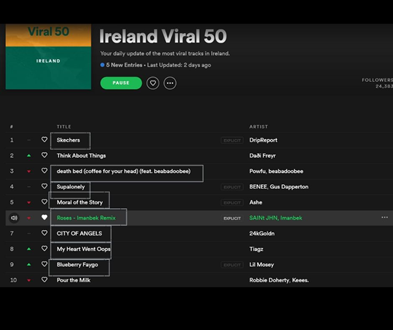 In the above image you can see that 8 of the top ten trending songs in Ireland have become popular through TikTok. This is because videos on TikTok are often made as a dance or reaction to songs. These songs then become popular on the platform and other users make videos with those songs. This leads to people searching for the full song on other platforms, such as Spotify and allows songs that were released months or even years ago to suddenly go viral.