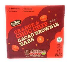 The foodie Market have two flavours of bars which include Peanut and Orange Chocolate Chip Brownie and Peanut (3 bars €1.99) VEGETERIAN ONLY