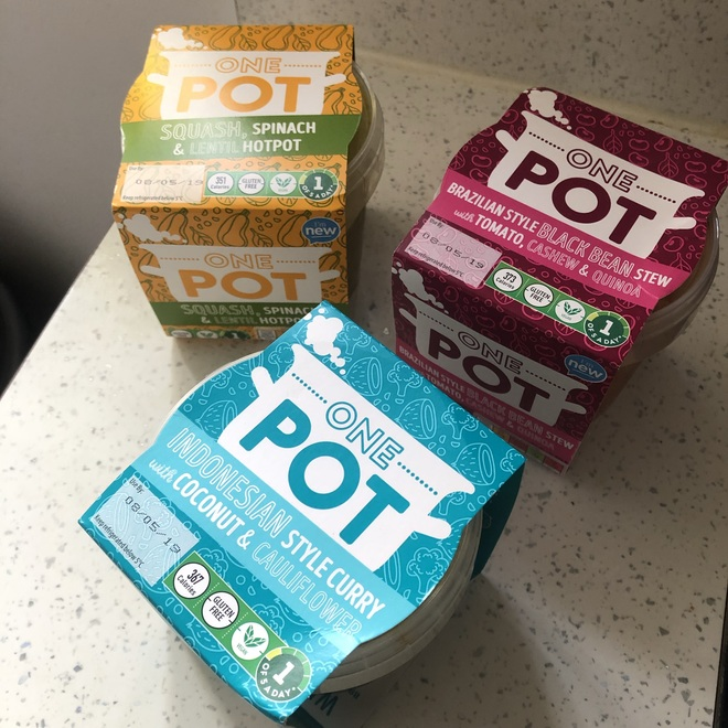 4 different flavours : Brazilian Style Black Bean Stew with Tomato, cashew and quinoa, Red Thai Style Vegetable Curry with Brown Rice, Indonesian Style Curry with Coconut and Cauliflower and Squash, Spinach and Lentil hot pot.