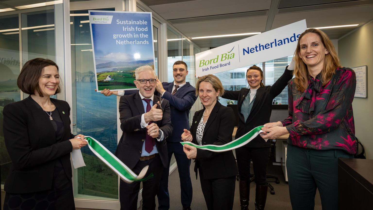 Pictured: Laura Crowley, Netherlands Market manager; H.E. Ambassador Kevin Kelly; Myself; Tara McCarthy, CEO Bord Bia; Niamh O'Connor, Marketing Fellow and Lian Enters, Market Specialist at the official opening of our new office at the World Trade Centre in Schiphol Airport.