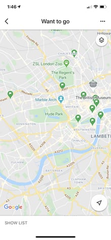 This is an example of the map I made before I went to London, and it ended up being a lifesaver because London is so big. I was able to go to the map see where I currently was and see what of the things that I wanted to do was close to me or made sense to go to at that time.