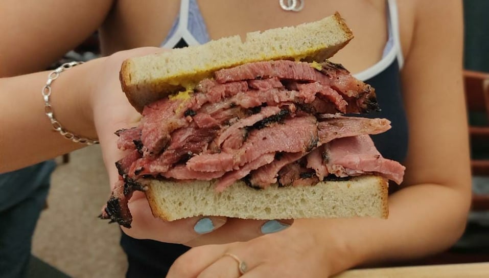 So if, like the lady at the end, you wanna have what she's having, head to Katz's for an unforgettable experience. The two of us shared a pastrami sandwich due to the costly price of $27 and thickness (see below). It is a popular spot so my advice would be to skip the lunch time rush and get there at noon, we did and only queued for about ten minutes.